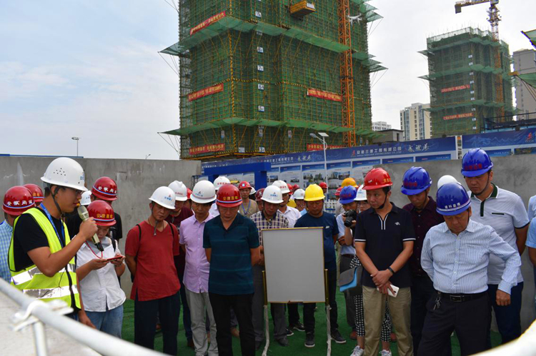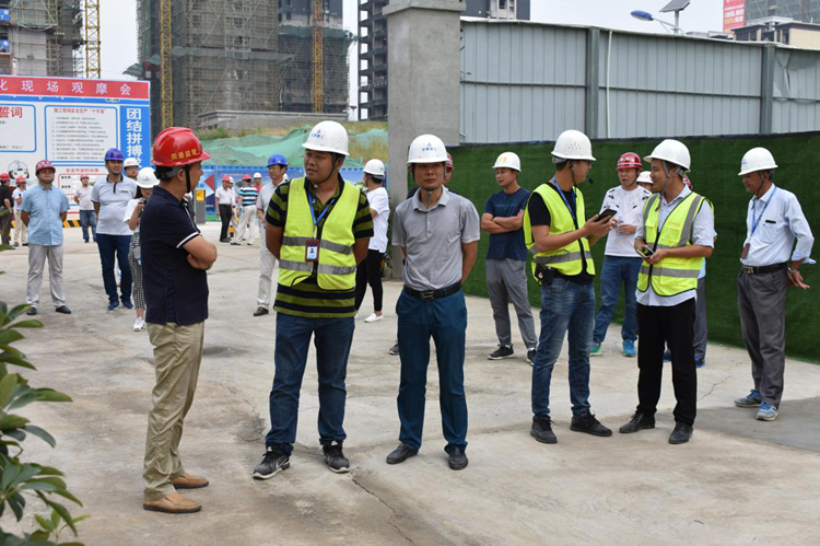 此次活動由淮南市住建委組織,通過對州來皖投·天下明珠項目現(xiàn)場施工工藝講解、質(zhì)量樣板展示、質(zhì)量樣板區(qū)展示、現(xiàn)場樓棟實體觀摩等形式,直觀展示了該項目在施工質(zhì)量關鍵部位、關鍵工序的做法和要求。項目部著重介紹了施工中鋁合金模板及全鋼型升降腳手架等技術的應用方法及效果,得到同行觀摩人員的一致好評。