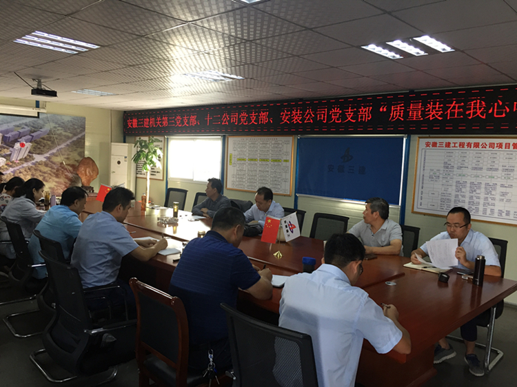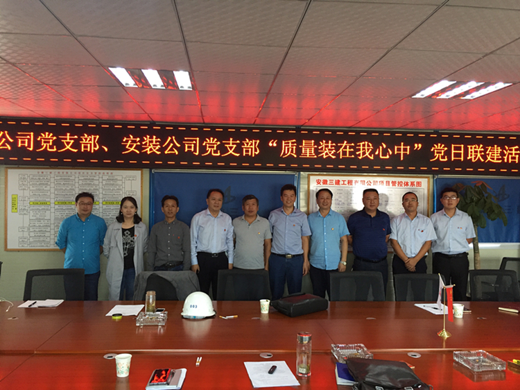 為了更好地落實(shí)全國的“質(zhì)量月”活動,進(jìn)一步提高公司員工的質(zhì)量意識,提高公司總體質(zhì)量水平。安徽三建機(jī)關(guān)第三黨支部、十二公司黨支部和安裝公司黨支部聯(lián)合開展主題為“質(zhì)量裝在我心中”的主題黨日活動。十二公司經(jīng)理周詩奎,技術(shù)質(zhì)量部副主任潘文同,成本合約部以及安全生產(chǎn)管理部相關(guān)黨員和入黨積極分子共12人參加黨日聯(lián)建活動。