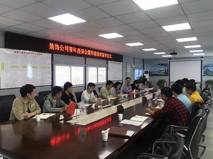 為了調(diào)動裝飾公司青年職工的工作熱情和積極性,切實幫助青年職工解決工作和生活中的實際問題,10月12日下午,裝飾公司團支部在創(chuàng)新館項目部會議室召開以“溝通交流,相互學(xué)習(xí),共同進步”為主題的青年職工交流會,并開展“師徒結(jié)對”活動。公司經(jīng)理萬和生、黨支部書記高莉、副經(jīng)理王皖、孫一甲及所有青年員工參加了交流會。