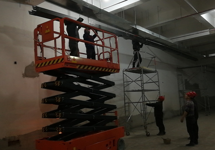 一線作業(yè)工人說:“這機器一開,穩(wěn)當(dāng)當(dāng)?shù)木蜕先チ?,干活快多了!”?/span>安徽創(chuàng)新館工程因建設(shè)需要進行建筑輪廓及功能修改,安裝作業(yè)的時經(jīng)常需要工人到高處進行作業(yè)。通常項目高處作業(yè)需要4位工人搭設(shè)腳手架和人字梯攀爬至高處進行施工,效率低,存在一定的安全隱患。四臺升降機進場后,僅需要2人配合就可以進行橋架、消防管道的安裝作業(yè),且方便攜帶工具及材料,不僅節(jié)約了勞動力,還有效的提高了安全性及工作效率。現(xiàn)場管理人員表示四臺升降機進場對提高項目安裝進度,保障項目建設(shè)將發(fā)揮重要作用。