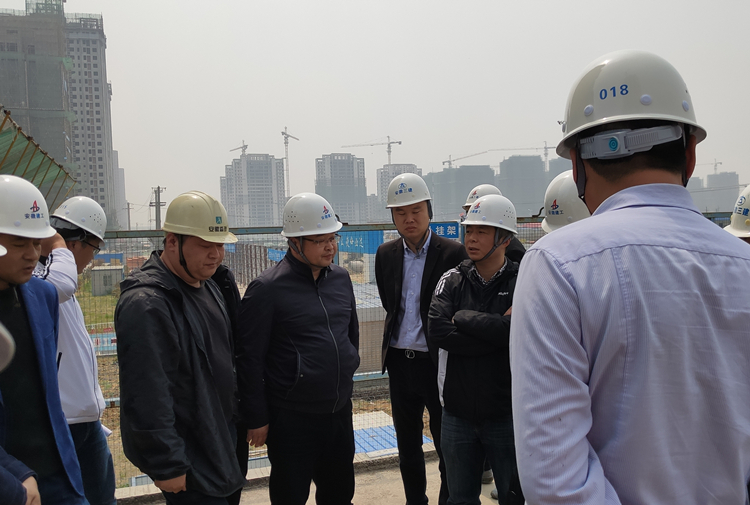 在施工現(xiàn)場(chǎng),孫俊中一行首先參觀了樣板展示區(qū),詳細(xì)聽(tīng)取了講解人員對(duì)裝配式工程的質(zhì)量控制、安全管理、揚(yáng)塵治理、工藝難點(diǎn)等方面的介紹。會(huì)上,雙方就新形式下裝配式工程的發(fā)展方向、施工難點(diǎn)以及解決措施等進(jìn)行了交流探討。