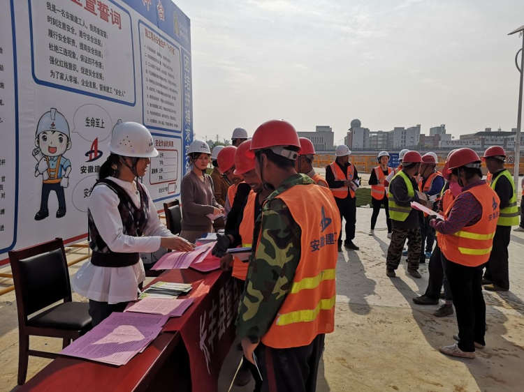2019年4月15日下午,長(zhǎng)豐縣重點(diǎn)工程建設(shè)管理中心的工作人員來(lái)到十公司承建的長(zhǎng)豐縣北城醫(yī)院項(xiàng)目部施工現(xiàn)場(chǎng),與項(xiàng)目管理人員共同為項(xiàng)目一線農(nóng)名工兄弟開展“國(guó)家安全教育日”普及教育暨掃黑除惡宣講活動(dòng)。
