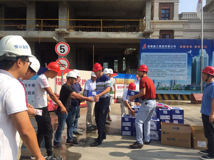 夏季來臨,天氣漸熱,7月8日上午淮南市建筑管理處主任姚永一行5人為安徽三建三公司恒大御府項(xiàng)目“送清涼”。
