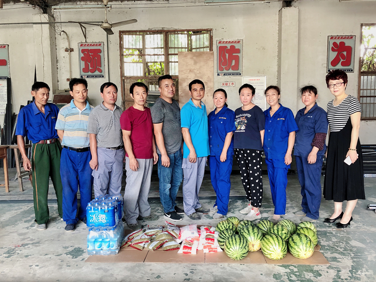 門窗公司工會(huì)為一線職工送去防暑降溫用品,確保高溫條件下職工的人身安全和健康。
